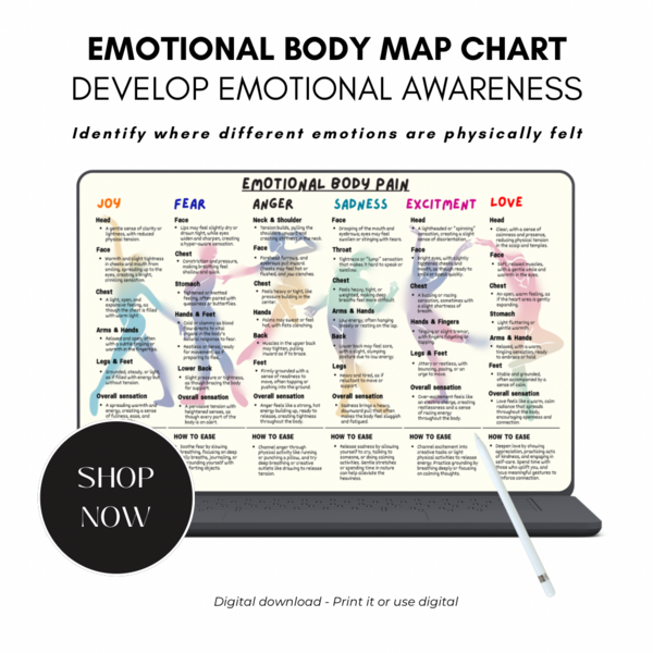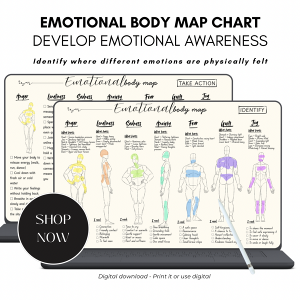 Emotional Body Map Chart: Self-Care Pain Relief Worksheets (Digital Download), Professional Use Allowed